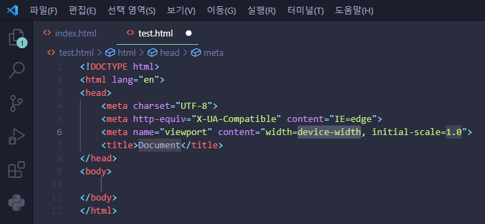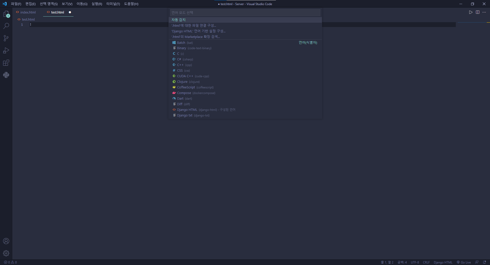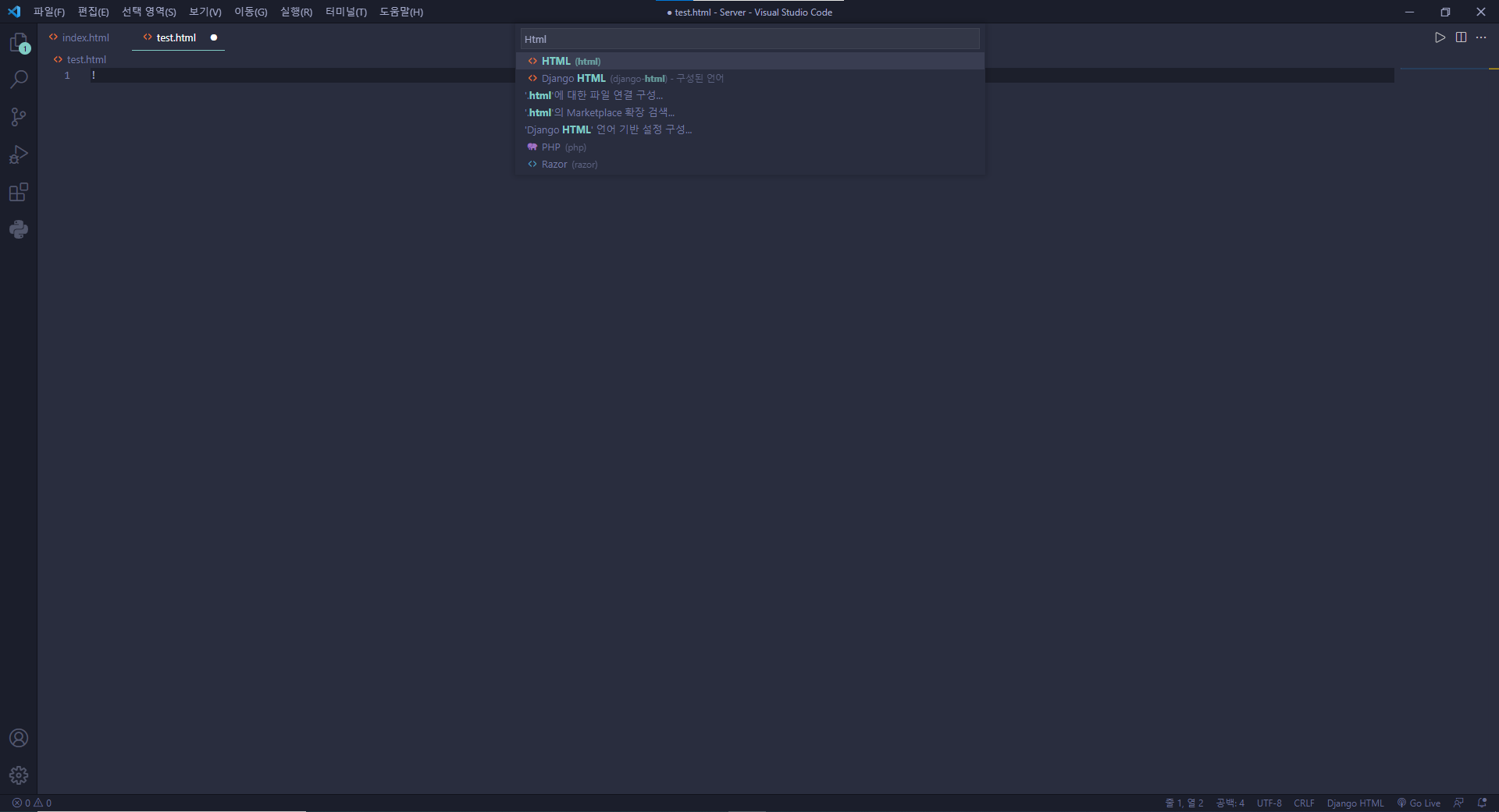 위의 'Django HTML'을 클릭하면 아래와 같은 화면이 나타난다.